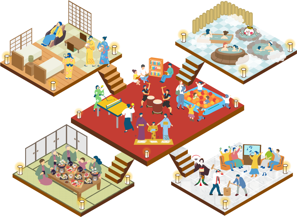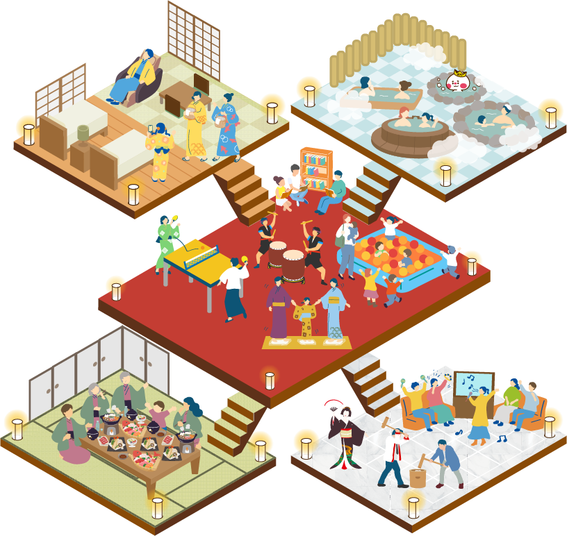 趣の異なる湯をめぐる、温泉の旅が館内で。
