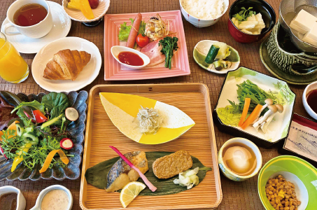 朝食バイキングまたは、朝食セット(和&洋)を、レストランまたは宴会場にてご用意いたします。