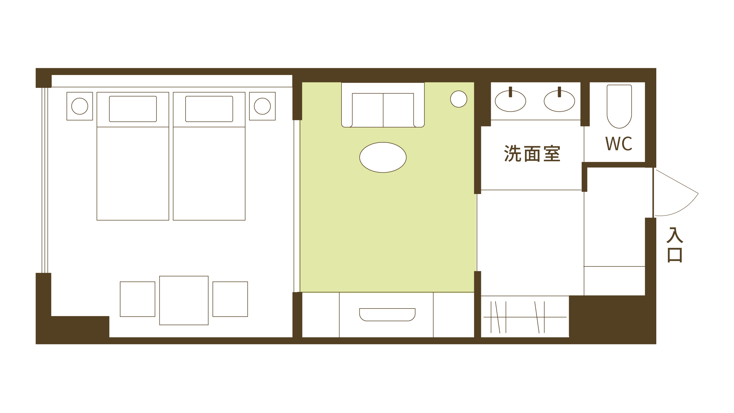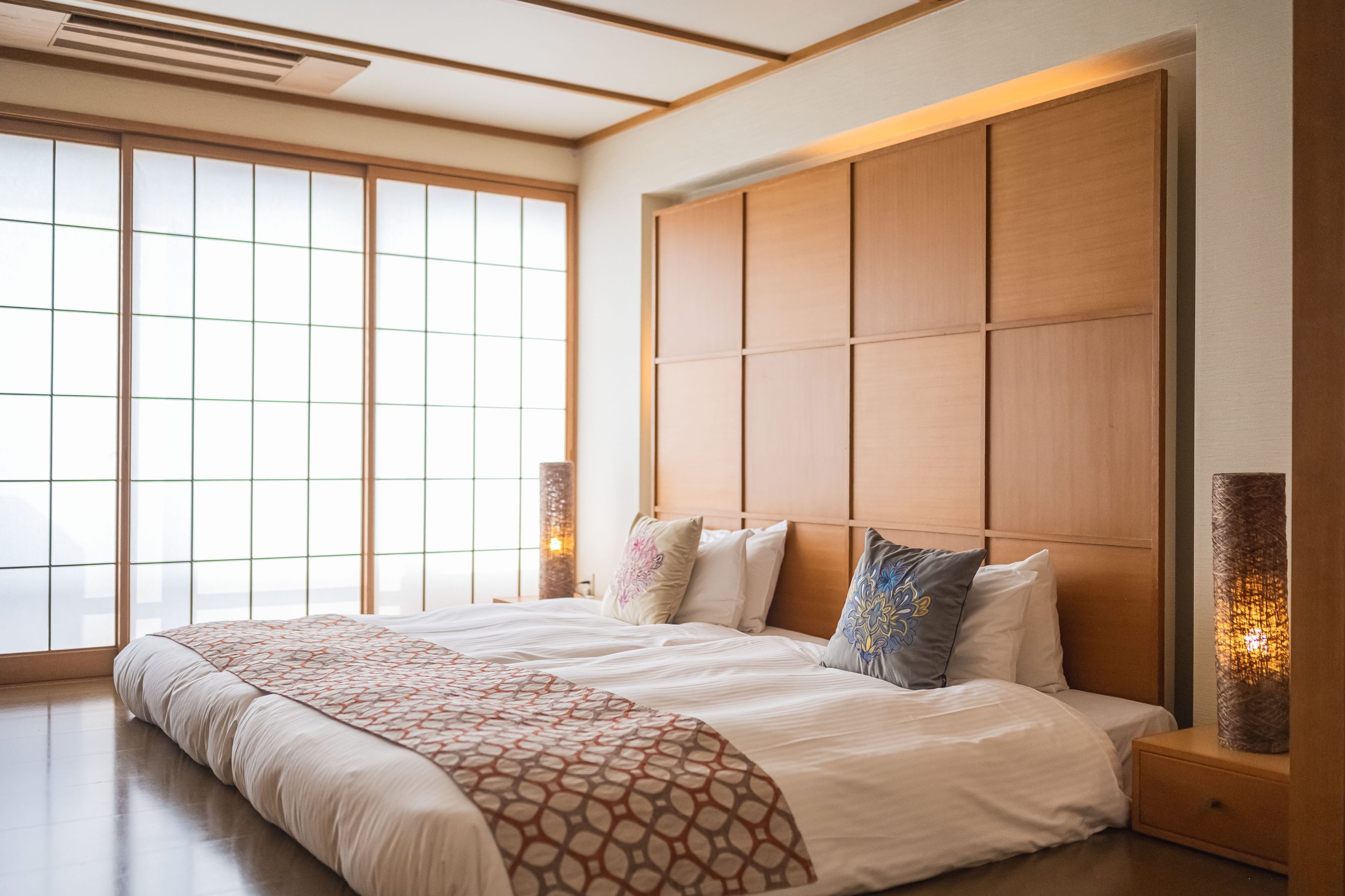 フローリングには高さのあるマットレスを2組ご用意し、ベッドのように快適にお休みいただけます。