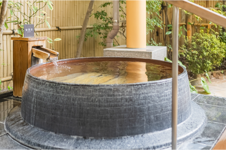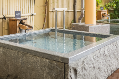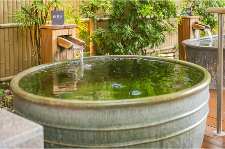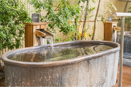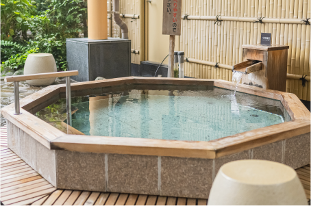 瓶の形をした湯船で、和の趣と温泉の癒しを同時に味わえます。
