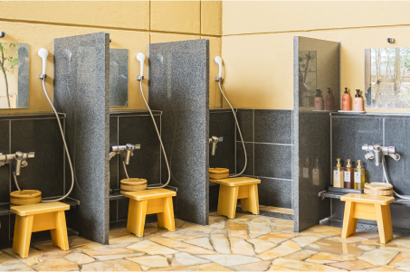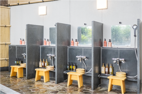 仕切り壁で一つ一つが独立し、シャワーの飛散もなく、周りを気にせずゆっくりと安心してご利用いただけます。