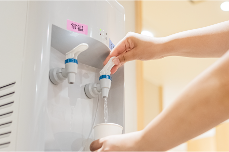 電解水素水ウォーターサーバーを設置。入浴前後には、健康・美容に嬉しく、入浴前後の水分補給も安心です。